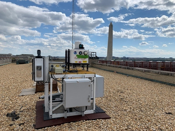 美国国家海洋和大气管理局(NOAA)和美国国家标准与技术研究院(NIST)在美国商务部位于华盛顿特区的赫伯特·克拉克·胡佛大楼顶部的现有气象站安装了多普勒激光雷达仪,以测量大气最低部分的风流和湍流,并将其应用于一个研究首都地区温室气体排放的项目中。