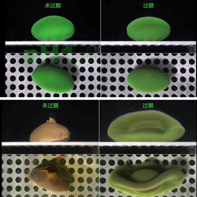 其次,超出有效期的药物在体内的崩解速度也是不同的。如下图,我们可以看到未过期的药物在体外的崩解较为顺利,而过期的药物的胶囊迟迟未溶解,从而无法发挥药效。