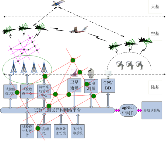 空天地一体化试飞测试网络示意图