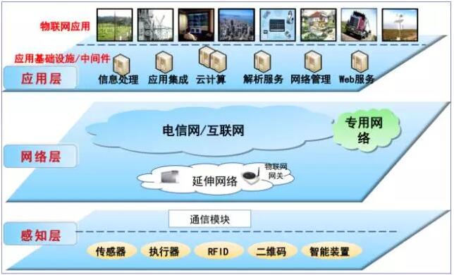 该图见于工业和信息化部电信研究院2011年出版的《物联网白皮书》,对物联网的构成解析更加清晰直观。