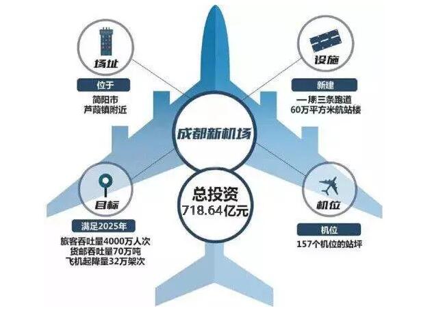 以成都为例,新机场的建立会使她成为继北京、上海、台北后国内第四座,也是中西部唯一一座拥有“一市两场”的城市,成为国家级国际航空枢纽。新机场不仅能满足更大旅客、货邮吞吐量,同时可带动相关工程投资逾3000亿元。对开放四川,加速链接全球,推动四川加快融入全球经济版图,驱动成渝经济区、天府新区的发展和再造一个“产业成都”,都具有重要的支撑意义。