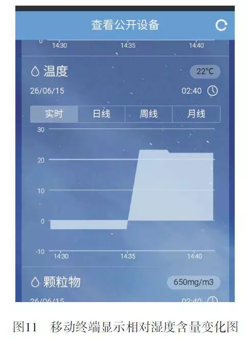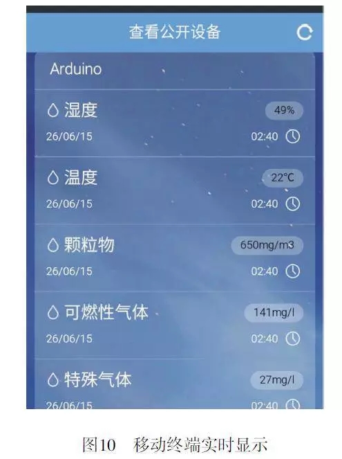 将测量风向、风速和降雨量传感器放置在建筑物外围,并配置相应的太阳能供电系统,以保证系统的正常运行;烟雾、颗粒物、可燃性气体等传感器分散安置在建筑物里,监测室内环境的变化情况。在 PC 端,接入云端网络后,启动安装在 PC 端的监控系统软件便可实现对监测数据的实时显示;在移动终端,可以在手机、平板电脑上安装移动终端实时监控系统软件或关注乐联微信公众账号,同样可以实现实时监测功能。移动终端解决了地域限制问题,使用户可以远距离遥控监测;当数据超过阈值,会进行报警,并将报警信息发送至微博。