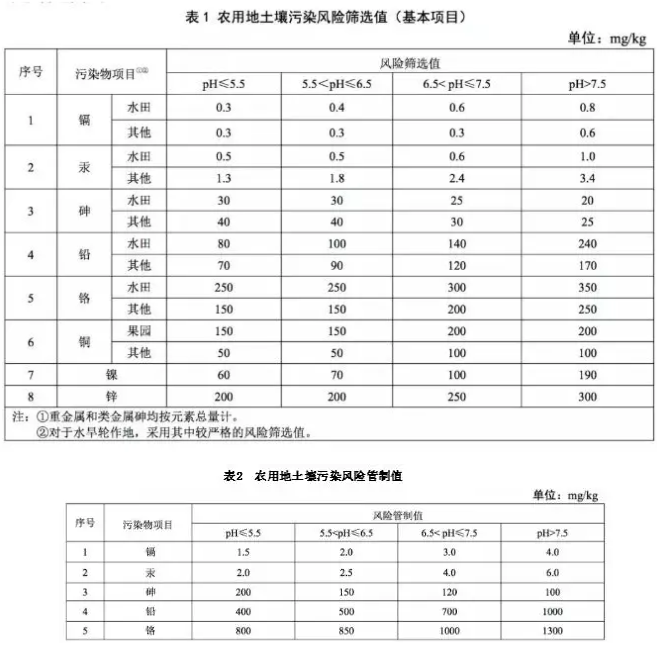 土壤污染是指人类活动产生的污染物进入土壤,使得土壤环境发生破坏甚至恶化,从而对环境和人类产生危害的现象。 土壤污染物的种类包括挥发性有机物(甲醛、丙酮等)、多环芳烃(苯系物等)、持久性有机污染物及农药(二噁英、六六六等)、重金属和其他无机物(铅汞砷、氰化物等)。 随着城市化和工业化进程的加快,我国土壤重金属污染事故频发,特别是耕地土壤重金属的污染,已经引起了国内外的广泛关注。 土壤重金属不仅持久性强、难降解,而且能够直接或间接的通过食物链威胁农产品质量和人类健康。尤其是镉、铅还会导致人体内分泌紊乱,被定义为环境激素物质;汞进入人体不但损伤神经系统,还会在肾脏中蓄积,造成不同程度的肾损害,同时还具有免疫毒性和生殖毒性,尤其是汞被甲基化之后生成的甲基汞,能诱发胚胎和胎儿畸形;砷是致癌物质,过量摄入会引发皮肤、心血管、呼吸系统和神经系统癌变,人们熟知的砒霜,即是砷化合物的一种。 因此,重金属一直以来是土壤研究中重点关注的一类污染因子。 2018年修订了GB 15618-2018《土壤环境质量 农用地土壤污染风险管控标准(试行)》,其中明确规定了农用地土壤重金属污染筛选值和管制值(包括镉、汞、砷、铅、铬等分别在水田和其他土壤中的浓度限值),如表1和表2所示。 耕地土壤的污染现状及治理工作也得到了很多部门的高度重视。2017年农业农村部和生态环境部根据《中华人民共和国环境保护法》等有关法律、行政法规,联合发布《农用地土壤环境管理办法(试行)》(2017年11月1日起施行),该《办法》指出农用地土壤环境质量国控监测点位应当重点布设在粮食生产功能区、重要农产品生产保护区、特色农产品优势区以及污染风险较大的区域等,急需进一步探索可借鉴、可复制、可推广的重金属污染耕地治理模式和体制机制。实施农产品产地土壤重金属污染治理示范和农产品产地禁产区划分示范点,以水稻、小麦重金属污染耕地为重点,制定受污染耕地安全利用技术指南,推动水稻、小麦等重点作物污染耕地治理试点示范。 与此同时,国务院也出台《土壤污染防治行动计划》(简称“土十条”),将土壤污染问题列入了我国生态文明建设三大攻坚战之一,加大产业结构调整力度,强化环境执法监管,并逐步启动耕地土壤的污染修复工作。力争到2020年,重点行业的重金属排放量要比2013年下降10%。由于重金属在土壤中的分布并不均匀,且易受污染点源影响,目前的土壤修复一般是以区域为单元,因此对于一个区域污染的准确调查与评价是土壤修复的先决条件。 《中国测试》最新刊登的文章中,研究人员就滨江沿海地区耕地土壤重金属污染特征及潜在生态风险进行了深入探讨。 首先按照《农田土壤环境质量监测技术规范》相关要求进行样品采集与处理,采用原子荧光法测定汞、砷,石墨炉原子吸收分光光度法测定铅、镉,火焰原子吸收分光光度法测定铬,得到5种重金属元素(Cr、Pb、Cd、As和Hg)的含量均低于《土壤环境质量 农用地土壤污染风险管控标准》(GB15618-2018)中6.5<pH≤7.5标准值。 再综合采用单因子、内梅罗污染指数法和Hakanson潜在生态危害指数法(RI),全面评估南通市耕地土壤重金属(Cr、Pb、Cd、As、Hg)的污染状况,分析其主要污染来源。 结果表明:研究区土壤重金属污染的潜在生态风险级别为A级(低生态风险),各元素的潜在生态风险等级从大到小依次为Cd>Hg>As>Pb>Cr。该文为下一步土壤修复和农业污染控制提供依据,同时也为环境类似的地区开展相关工作提供借鉴。 更多精彩文章,请关注《中国测试》官方微信!