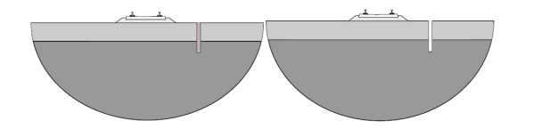 图2 隔振沟有填充物(左)、无填充物(右)