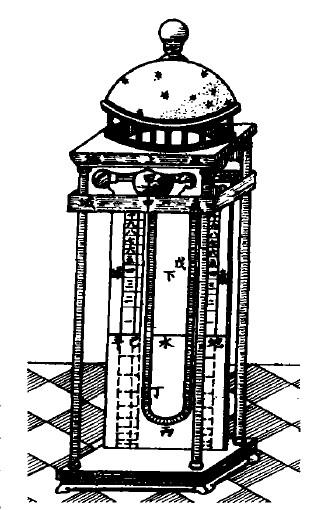 刻漏引又称漏刻﹑漏壶,是中国古代的漏水计时器。漏壶主要有泄水型和受水型两类。早期的刻漏多为泄水型。水从漏壶底部侧面流泄﹐使浮在漏壶水面上的漏箭随水面下降﹐由漏箭上的刻度指示时间。後来创造出受水型﹐水从漏壶以恒定的流量注入受水壶﹐浮在受水壶水面上的漏箭随水面上升指示时间﹐提高了计时精度。为了获得恒定的流量﹐首先应使漏壶的水位保持恒定。其次﹐向受水壶注水的水管截面面积必须固定﹐水管采用“渴乌”(虹吸)原理﹐便於调整和修理。