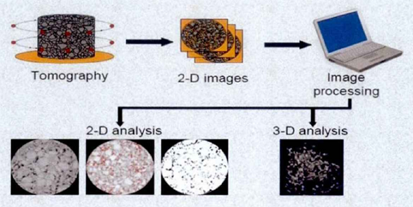 工业X-CT技术在沥青混合料领域有多种应用,主要是利用X-CT重建图像的功能进行颗粒和空隙形态分析,或者结合有限元或离散元软件进行细观结构力学分析。现举例如下: