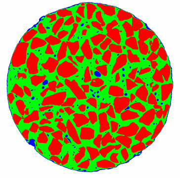 红色部分为集料图像,绿色部分为胶浆图像,蓝色部分为空隙图像。