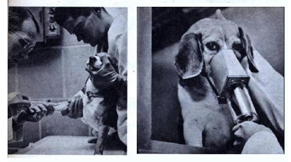 世界上最早使用比格犬的实验,是美国犹他大学的“致命放射性毒性实验”。该项实验的研究人员在比格犬没有接受麻醉的情况下,观察放射性物质如何影响其健康和寿命。高剂量辐射中毒在它们身上典型影响就是“自发性”骨折,这可能发生在脊柱、腿骨、肋骨等身体骨骼的任何位置,骨肿瘤、骨缺损、牙齿脱落也是常见伤害。